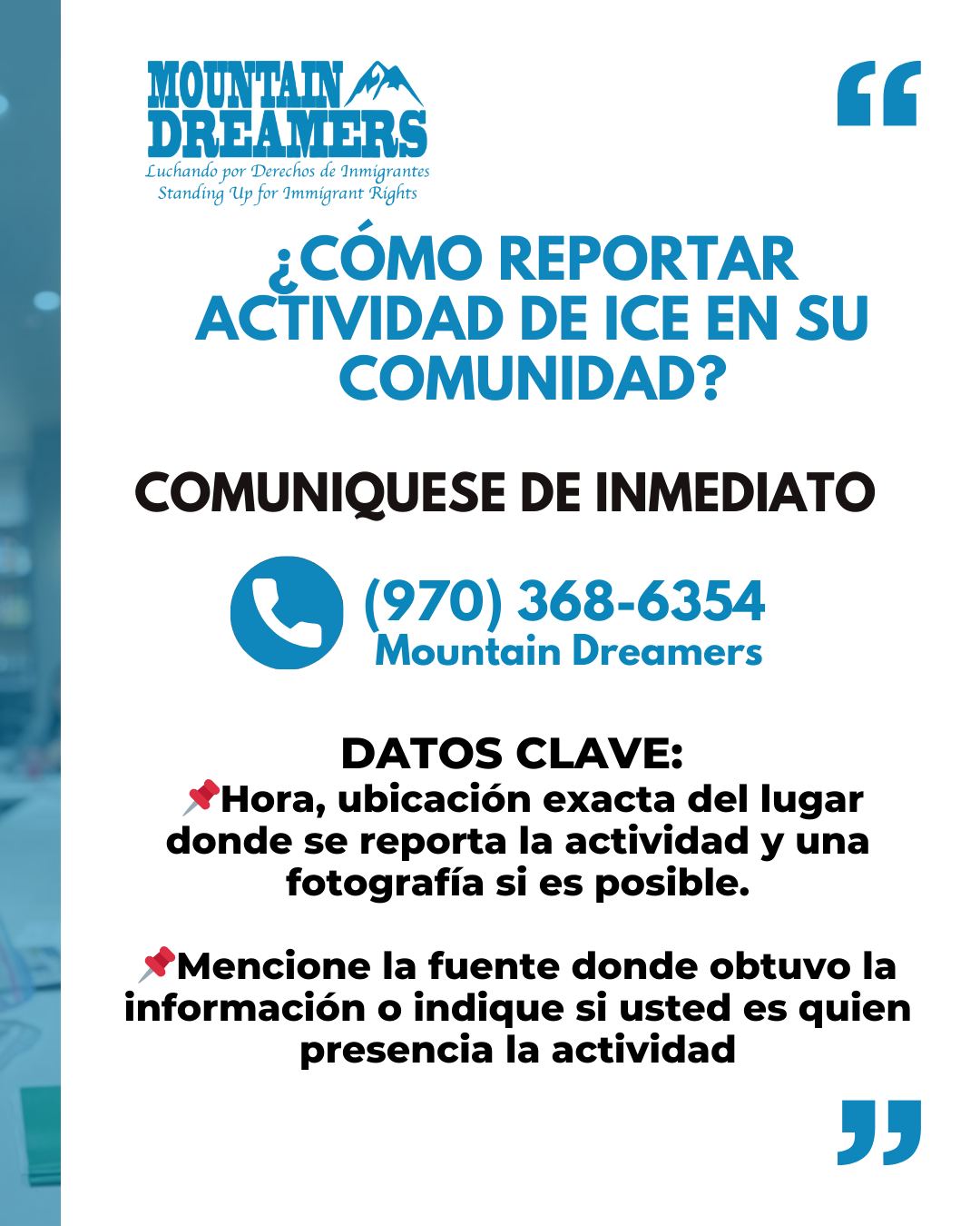 Know of suspected ICE activity? Call Mountain Dreamers: